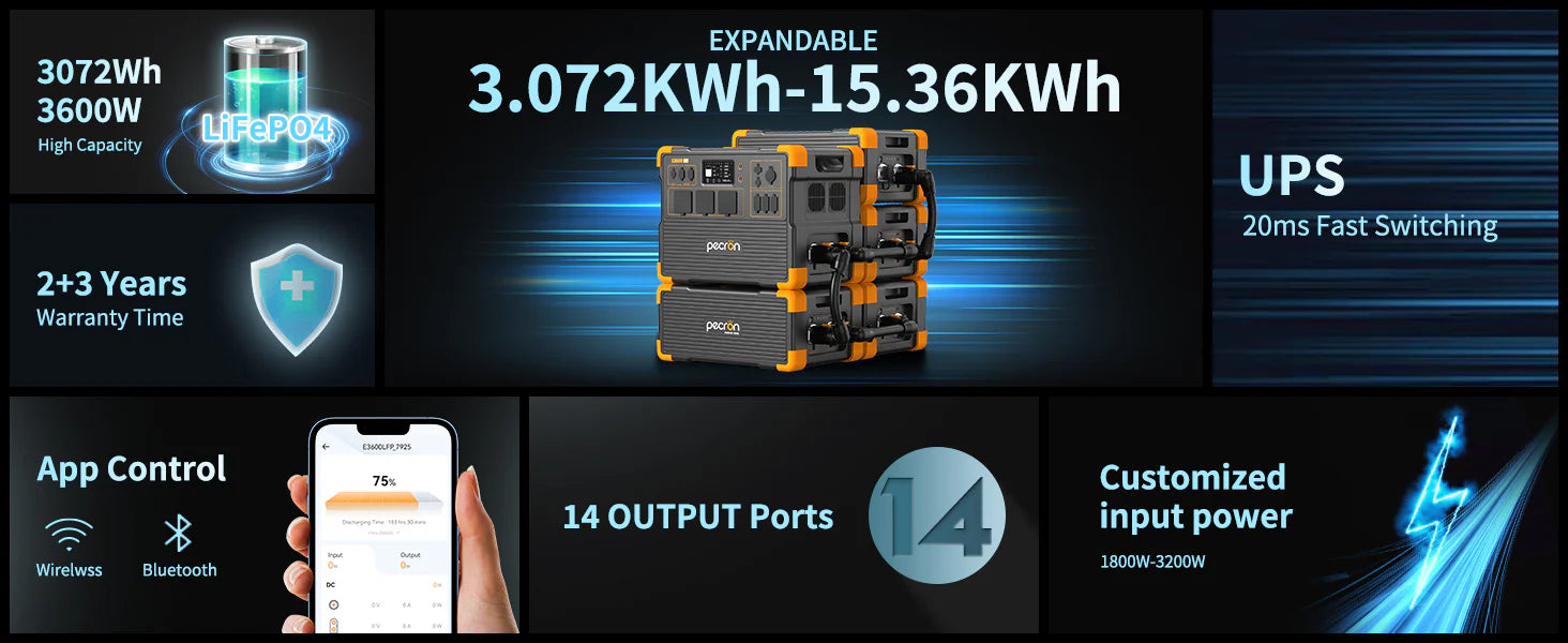 Never worry about outgrowing your energy needs! ThePecron E3600LFP + EP3000-48Vsystem gives you the freedom to expand up to 15,360Wh whenever you need more power—no complicated upgrades or replacements required.